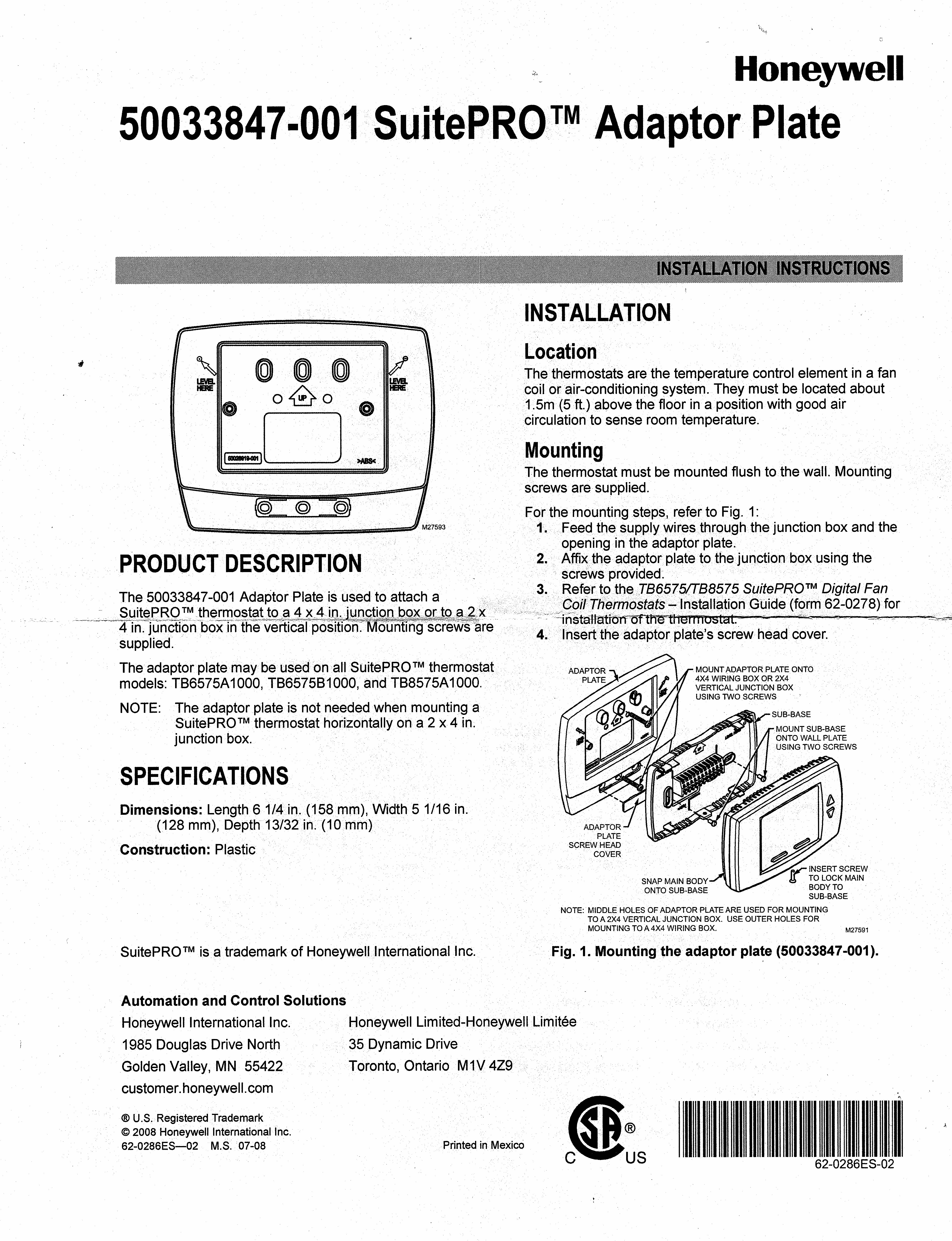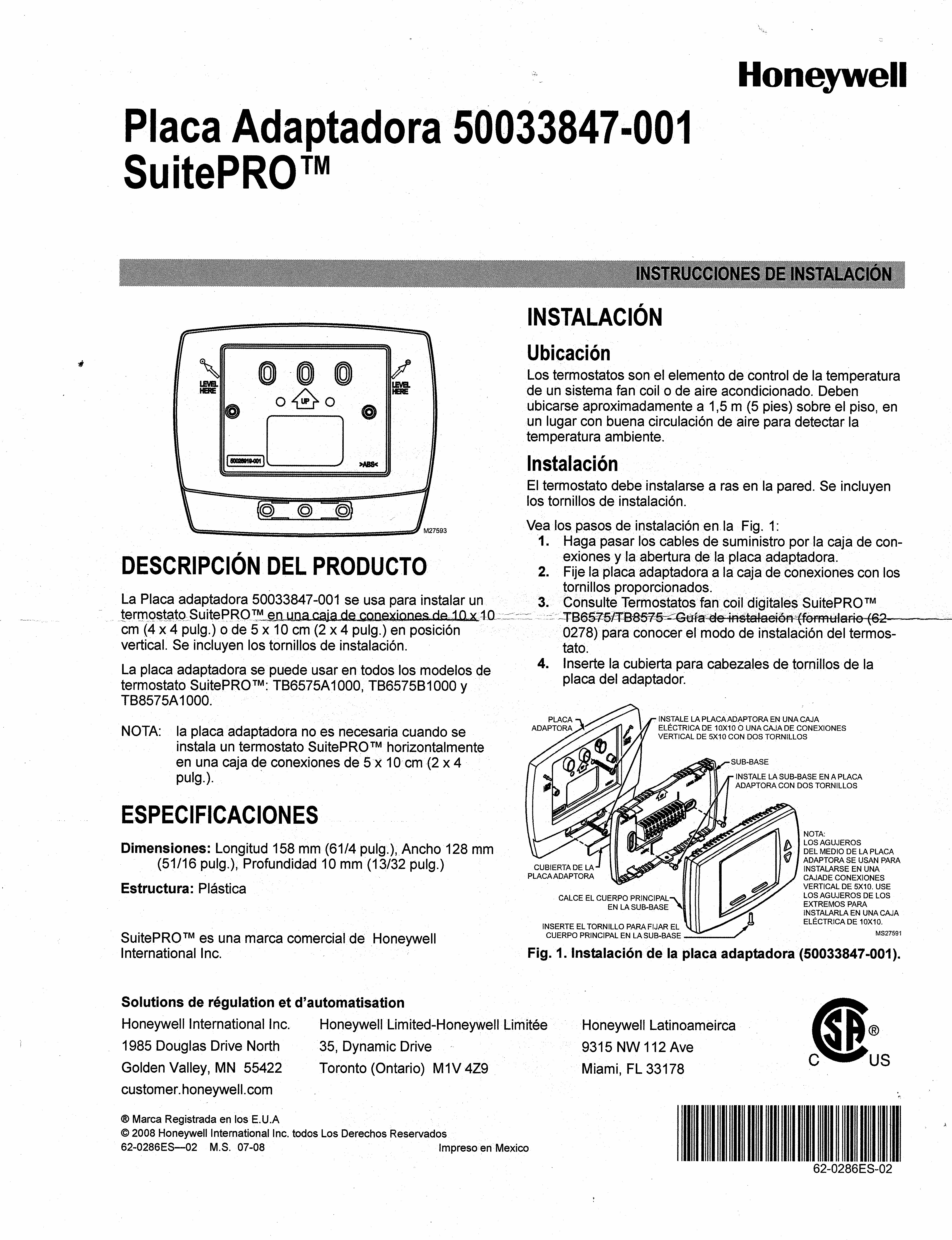 TB8575A1000TB8575A1000 Honeywell SuitePRO - 24 Vac,2 or 4 Pipe 3-Speed Fan Coil T-Stat with Manual/Auto Heat or Cool Changeover Install_Instructions Brochure Submittal_Sheet Wall_Adapter_Plate Wall_Adapter_Plate_Spanish